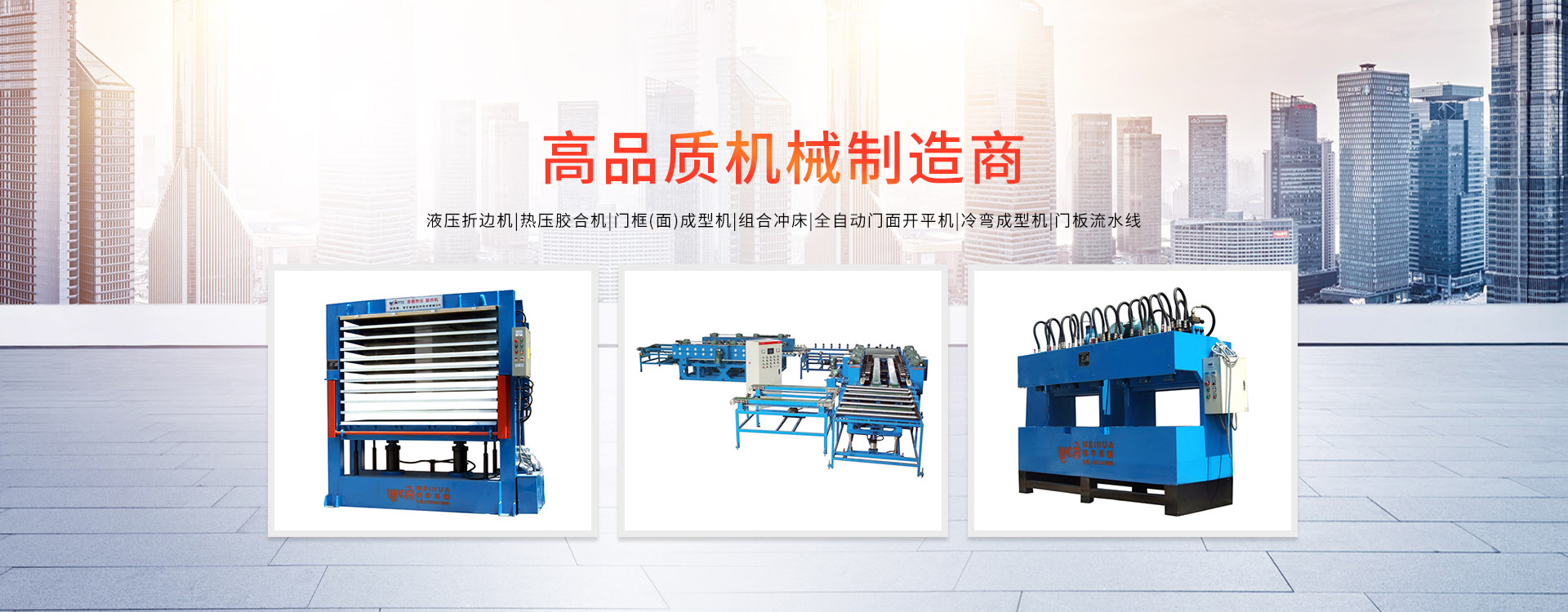 更多>溫州偉華機(jī)械制造有限公司地處浙江溫州瑞安市塘下工業(yè)區(qū),創(chuàng)建于2009年,數(shù)年來全心致力于防盜門專用設(shè)備的研發(fā)制造,主營(yíng)產(chǎn)品有:門面成型機(jī)、門框成型機(jī)、熱壓膠合機(jī)、組合沖床、液壓折邊機(jī)、雙頭沖床、門面開平機(jī)?,F(xiàn)已具備獨(dú)特的管理模式和產(chǎn)品開發(fā)能力,歷經(jīng)多年的努力,現(xiàn)已發(fā)展成為國(guó)內(nèi)最具影響力的機(jī)械設(shè)備企業(yè)之一。